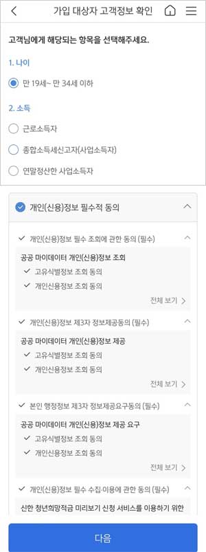 ▶ 청년희망적금 신한은행 가입대상 자격조건 조회