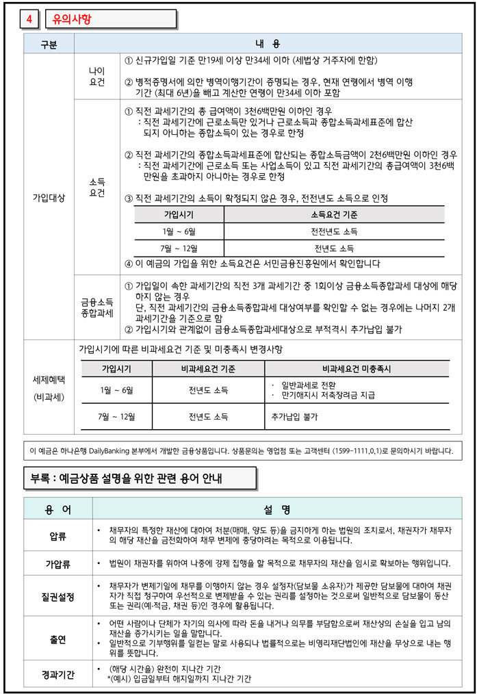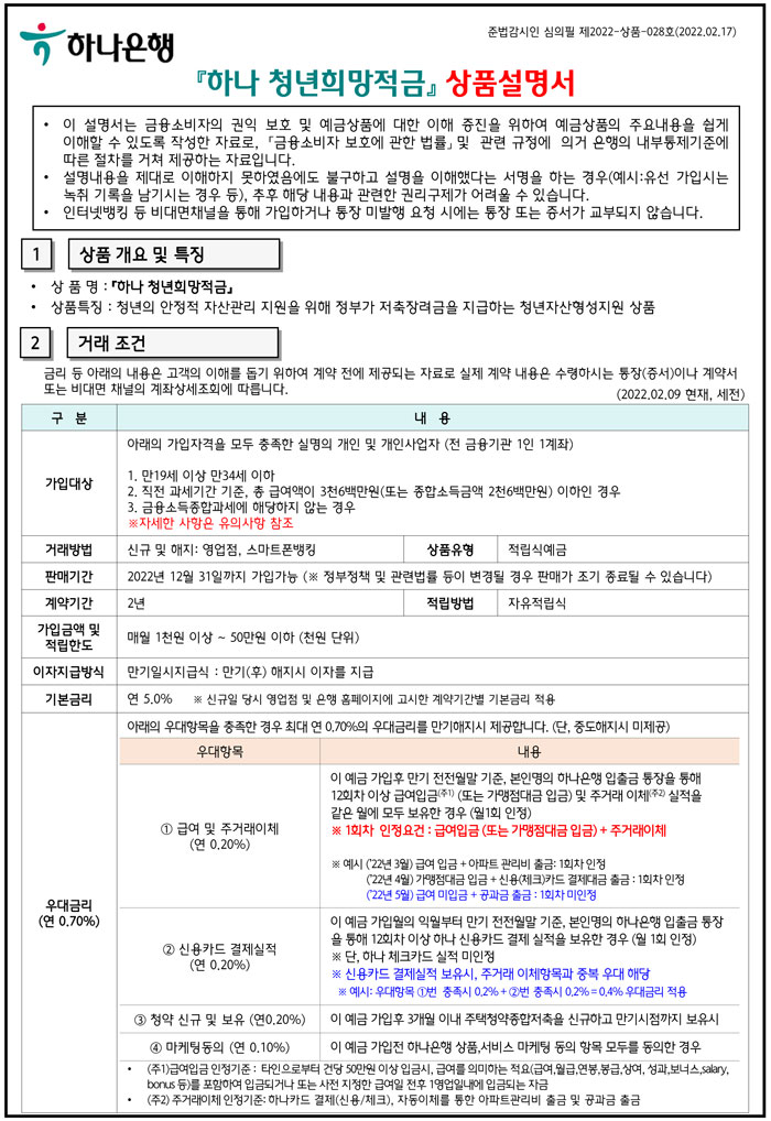 ▣ 하나은행 청년희망적금 신청 방법 및 가입대상 자격조건 상품설명서 및 요약설명서