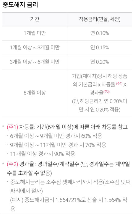 - 12개월 이내 : 1개월~12개월 적립금액의 2%, 최대12만원