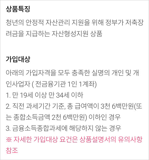 ▶ 하나은행 청년희망적금 가입대상 자격조건