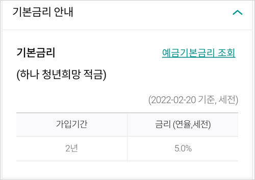 하나원큐 앱에서 상품→ 적금/청약→하나 청년희망적금순으로 클릭하면 하나은행 청년희망적금 신청방법 및 가입방법, 자격조건, 기본금리, 우대금리 등을 확인할 수 있다고 합니다. 하나은행 청년희망적금 미리보기 서비스에 참여하셨다면 다시 가입요건(연령 및 개인소득) 확인절차를 거치지 않고 바로 가입할 수 있다고 합니다.