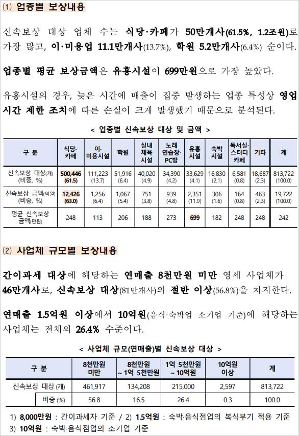 다만, 신속보상 대상 중 약 36만개사는 지난 1월 선지급된 500만원을 공제한 금액을 받게 된다고 합니다. 신속보상의 대상과 금액은 확인요청 및 확인보상 신청 결과 등에 따라 변경이 가능하다고 합니다.