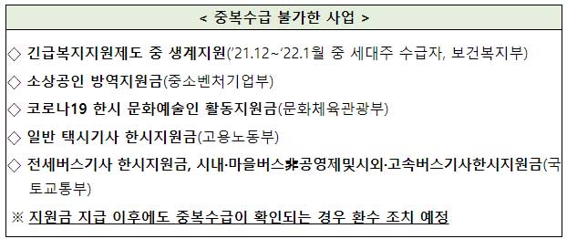 ※ 지원금 지급 이후에도 중복수급이 확인되는 경우 환수 조치 예정.