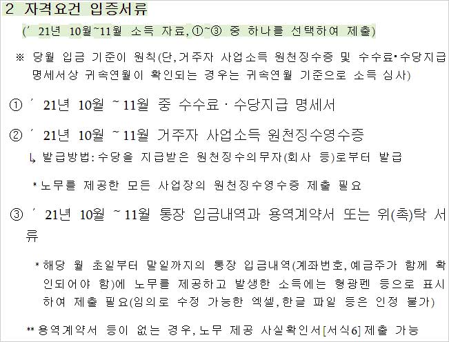 <특고 프리랜서 긴급고용안정지원금 증빙서류 - 자격요건 입증서류>