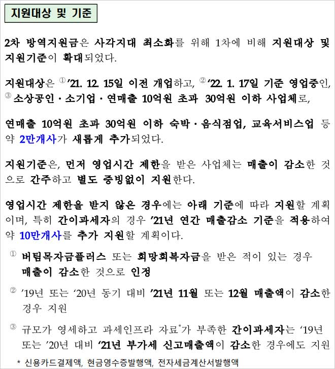 ※ 2차 300만원 소상공인 방역지원금 신속지급 대상자 신청방법은