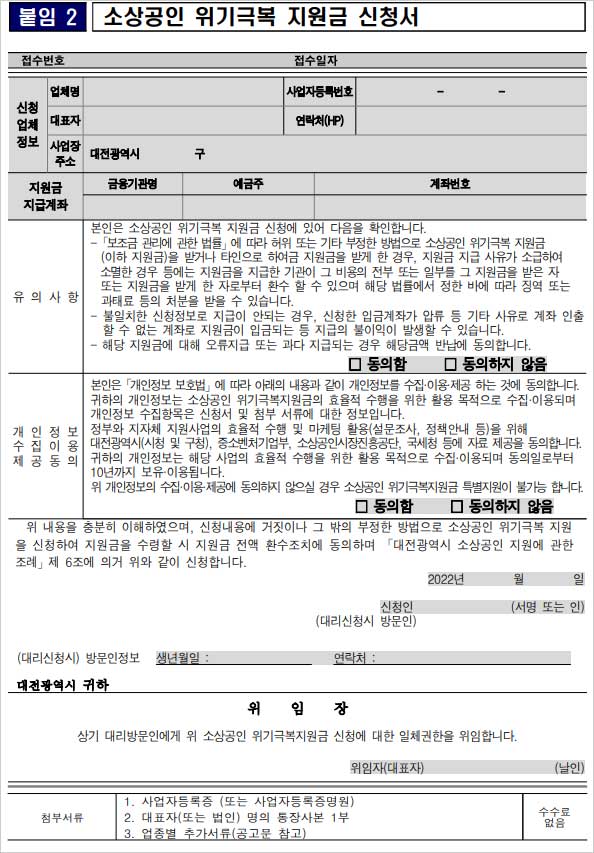 대전 소상공인 재난지원금 신청, 위기극복지원금 대상 및 신청 방법, 기간, 서류
