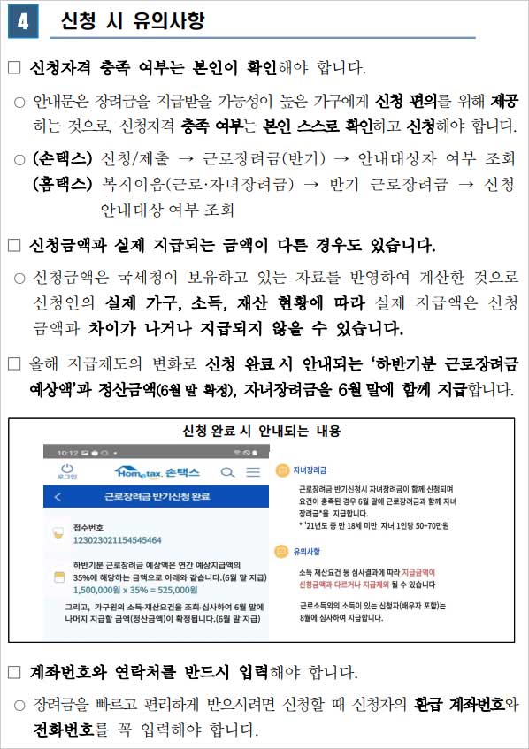 2021 하반기 및 2022년 국세청 근로장려금 신청자격확인 및 근로장려금 신청방법