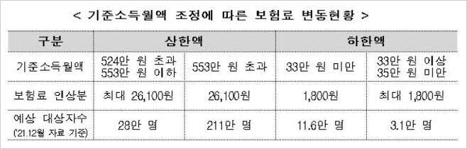 기준소득월액 상한액은 524만 원에서 553만 원으로 29만 원, 하한액은 33만 원에서 35만 원으로 2만 원 인상됐다고 합니다. 국민연금 기준소득월액 조정에 따라, 일부 가입자는 월 보험료가 높아지지만, 연금급여액 산정에 기초가 되는 가입자 개인의 생애 평균 소득월액이 높아져 연금 수급연령에 도달하면 더 많은 연금을 받게 된다고 합니다.