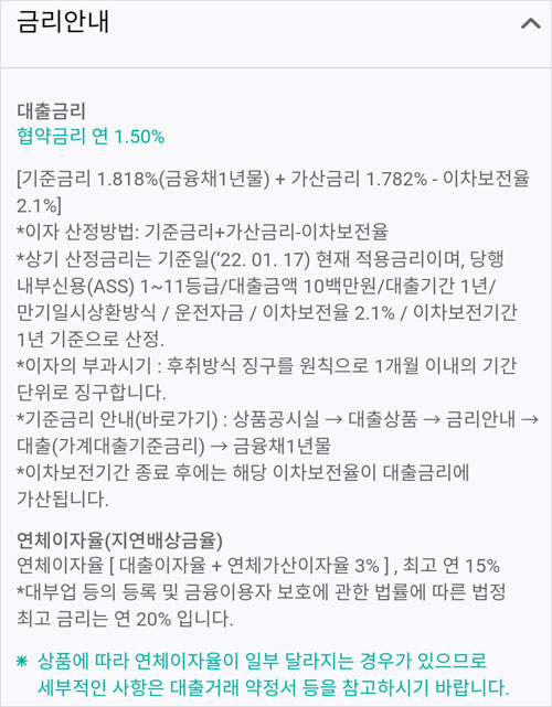 - 대출기간: 1년 이내