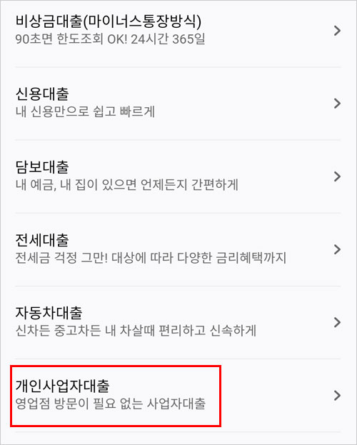 하나원큐 앱에서 상품가입→ 대출→ 개인사업자대출순으로 클릭하면 중신용자를 위한 하나은행 소상공인 희망대출플러스 희망플러스 보증부대출 상품과 고신용자를 위한 하나은행 소상공인 희망대출플러스 희망플러스 신용대출 상품을 확인 할 수 있다고 합니다.