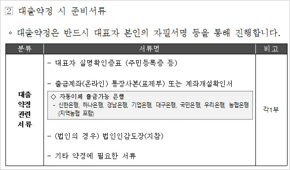 소상공인 희망대출 신청서류 및 약정관련 서류라고 합니다. 이상은 지난 1월 3일부터 신청 접수를 받고 있는 저신용 소상공인 희망대출 승인기간, 저신용 소상공인 희망대출 신청 방법 및 소상공인 희망대출 신청 대상, 융자조건, 지원금액, 대출기간, 대출 신청 서류, 대출 제한대상 등에 대한 간단 정보였습니다. 참고하셨으면 좋겠습니다.