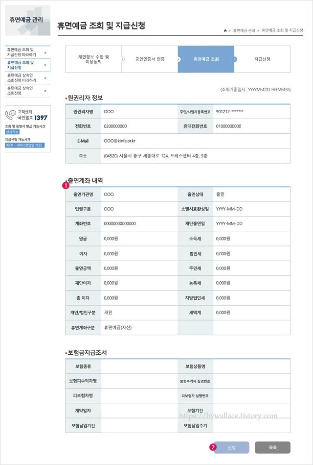 이후 본인계좌 지급이나 기부 신청내역에 대한 전자서명절차가 진행됩니다. 전자서명에 동의하게 되면 본인 확인 인증이 한 번 더 이루어진 후 공인인증서 인증이 진행된다고 합니다. 모든 이용 절차가 끝나면 휴면예금 지급신청 내역 조회 및 증명서 발급이 가능합니다.