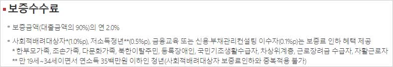 ▶ 보증금액(대출금액의 90%)의 연 2.0%