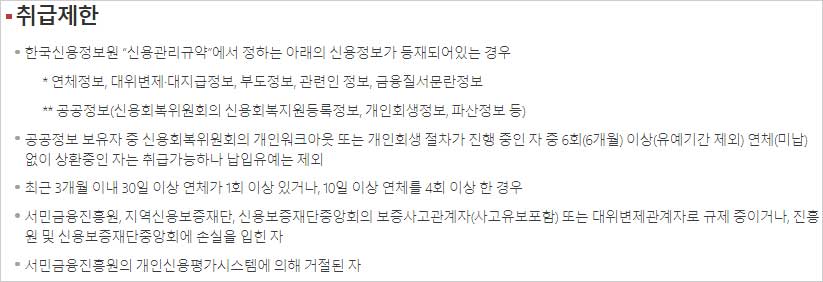 ◈ 근로자 햇살론 취급제한