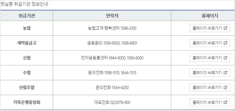 ◈ 근로자 햇살론 취급은행 및 기관