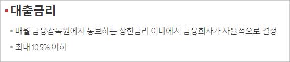 ▶ 매월 금융감독원에서 통보하는 상한금리 이내에서 금융회사가 자율적으로 결정.