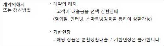 - 해당 상품은 분할상환대출로 기한연장은 불가합니다.