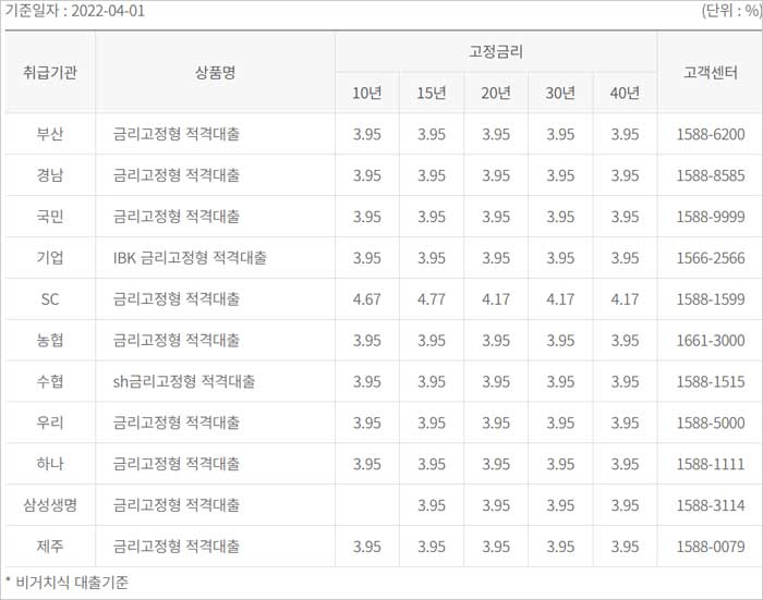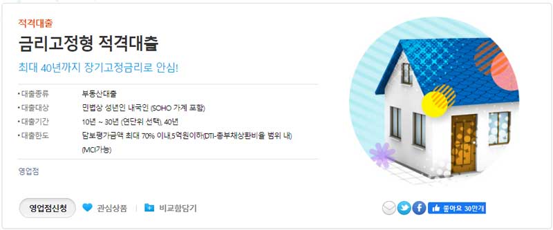 ▶ 40년까지 장기고정금리로 금리 상승할 것으로 전망하거나, 금리상승 위험을 피하고자 하는 고객에게 적합한 상품이라고 합니다.