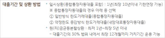 ▶ 일시상환(종합통장자동대출 포함) : 1년(최장 10년이내 기한연장 가능)