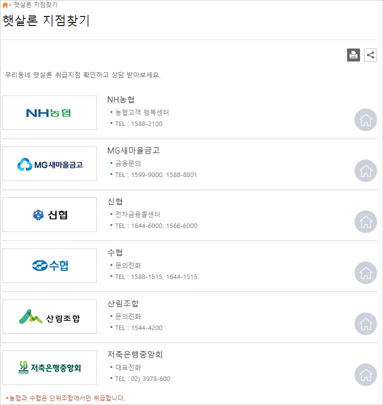 ▣ 햇살론 긴급생계자금대출 취급처