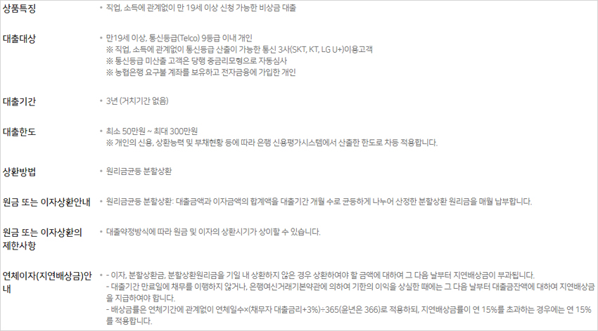 ▣ 농협 올원 비상금대출 유의사항