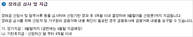 반기분 근로장려금을 신청하지 않았을 경우 5월에 정기분 근로장려금을 신청하면 8월까지 심사해 지급 여부를 결정한다고 합니다.