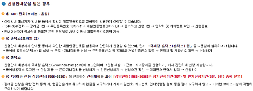 아울러 국세청은 신청과 관련, 금융사기가 의심되면 즉시 가까운 세무서나 경찰청(112), 한국인터넷진흥원(118), 금융감독원(1332)에 신고할 것을 당부했다고 합니다.