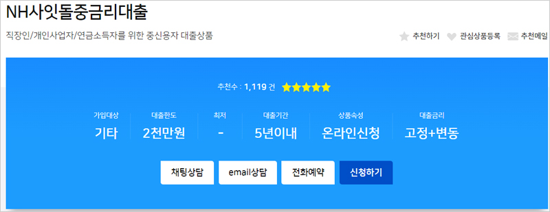 직장인/ 개인사업자/ 연금소득자를 위한 중신용자 대출상품 NH농협 사잇돌중금리 대출
