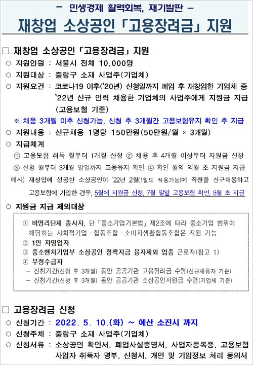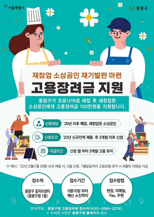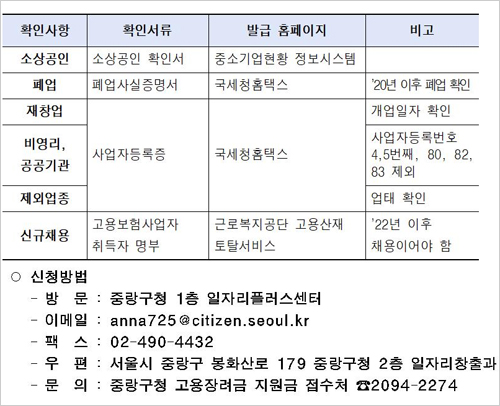 서울 중랑구 재창업 소상공인 고용지원금 대상 및 신청방법