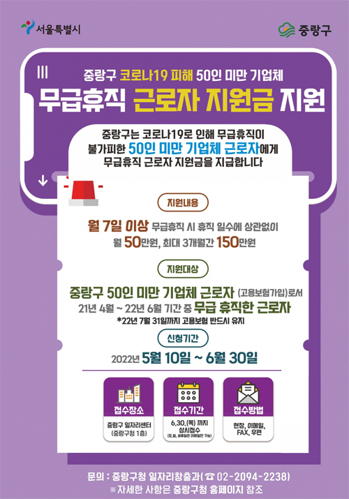 서울 중랑구 무급휴직 근로자 지원금 대상 및 신청방법