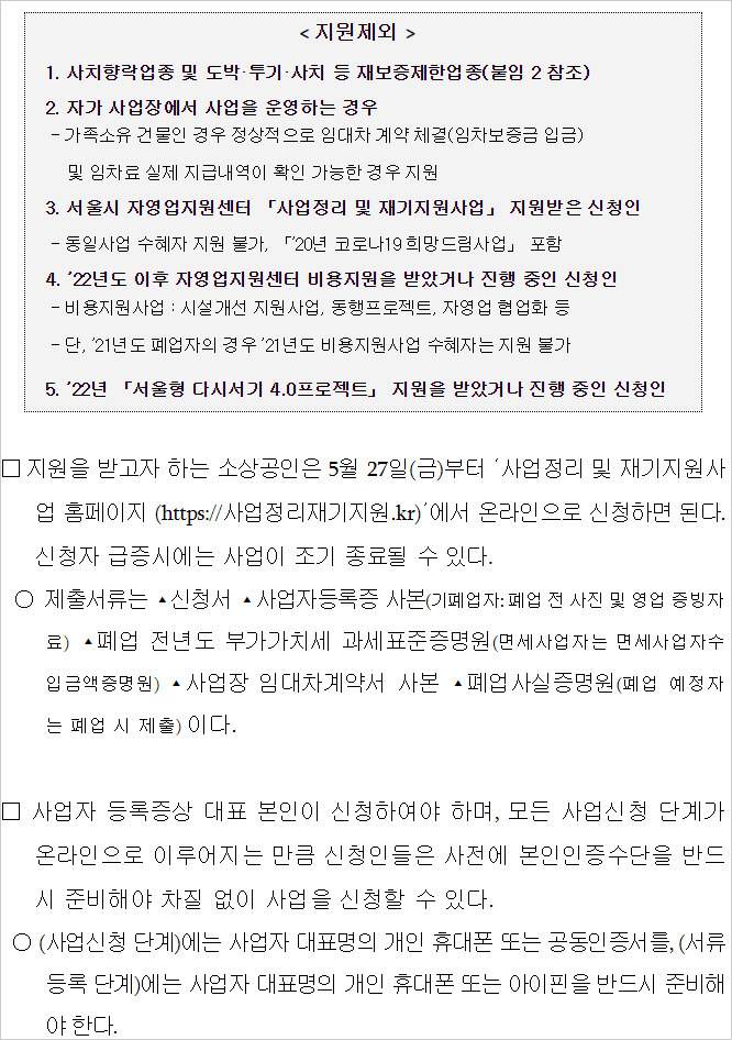 <소상공인 재기지원금 서울시 폐업지원금 300만원 신청 제외 대상>