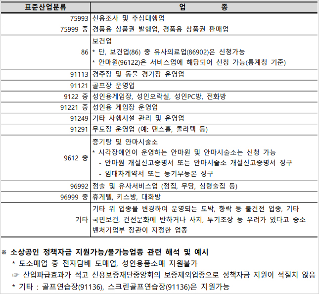 또한 2022년 2차 추가경정예산에 포함된 사업 중 긴급고용안정지원금 등의 사업을 지원받은 경우 및 비영리기업 단체 법인 및 법인격 없는 조합이 지원제외대상이라고 합니다. 특히 집합금지 영업제한 조치 위반시 지원 제외가 가능하다고 합니다.