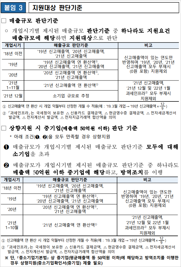 또한 2022년 2차 추가경정예산에 포함된 사업 중 긴급고용안정지원금 등의 사업을 지원받은 경우 및 비영리기업 단체 법인 및 법인격 없는 조합이 지원제외대상이라고 합니다. 특히 집합금지 영업제한 조치 위반시 지원 제외가 가능하다고 합니다.