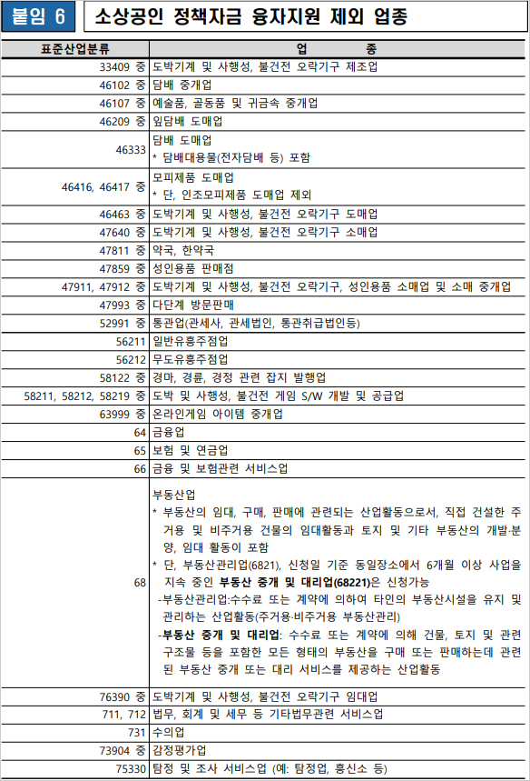 소상공인 손실보전금 자격 대상 확인 지원제외 대상은 사행성 업종, 변호사 회계사 병원 약국 등 전문직종, 금융보험관련 업종 등 소상공인 정책자금 융자 제외 업종이라고 합니다. 단 집합금지 등 방역조치를 이행한 유흥업소 등은 소상공인 손실보전금 지원대상에 해당된다고 합니다.