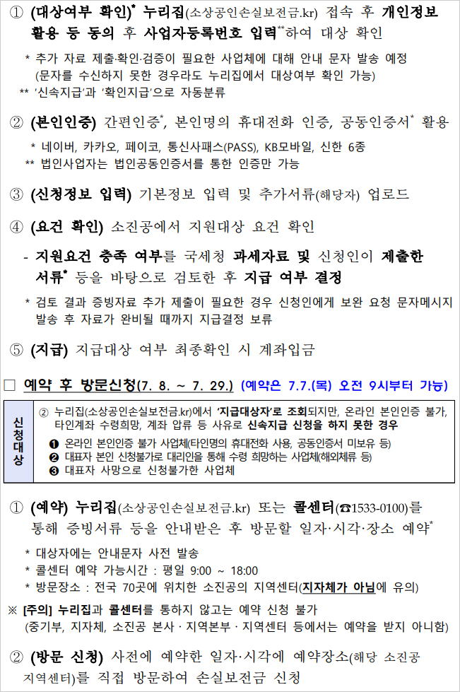 하지만 본인인증이 불가능해 온라인 신청이 어려운 경우엔 예외적으로 사전 예약 후에 소상공인시장진흥공단 지역센터에 방문해 신청할 수 있다고 합니다.