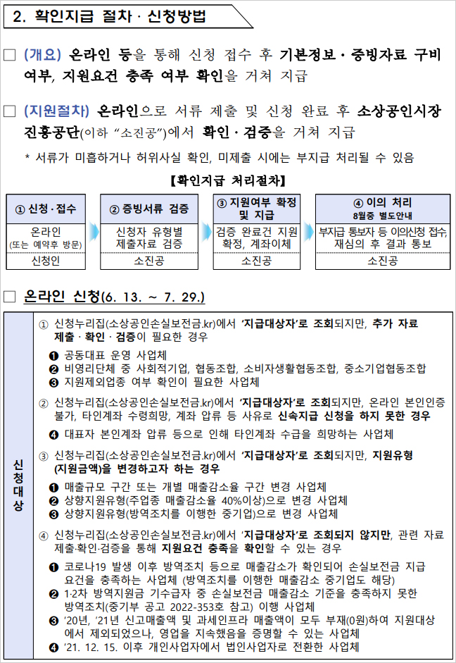 소상공인 손실보전금 확인지급 서류 및 신청대상 신청방법