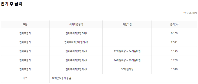 ※ 만기 후 발생되는 이자는 과세됨 (계약기간의 연장으로 인한 이자발생분도 만기 후 이자로 과세됨에 유의)