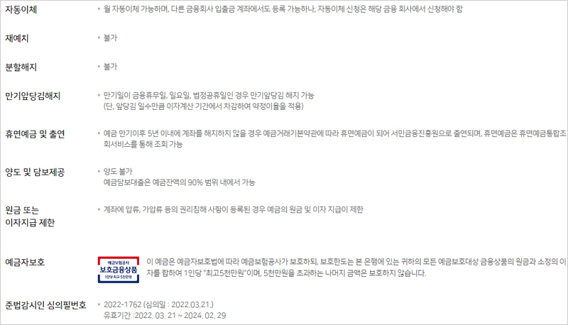 ▶ 예금 만기이후 5년 이내에 계좌를 해지하지 않을 경우 예금거래기본약관에 따라 휴면예금이 되어 서민금융진흥원으로 출연되며, 휴면예금은 휴면예금통합조회서비스를 통해 조회 가능