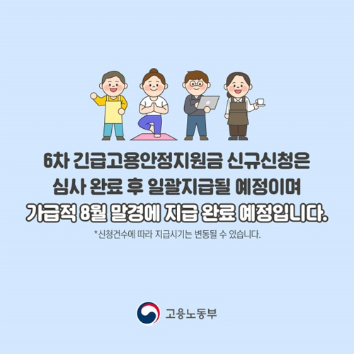 특고 프리랜서 6차 재난지원금은 모든 신청 건에 대한 심사를 완료한 이후 가급적 오는 8월 말경에는 일괄적으로 지급할 예정이라고 합니다. 다만, 신청건수에 따라 특고 프리랜서 6차 재난지원금 지급시기는 변동될 수 있다고 합니다. 참고하셨으면 좋겠습니다.