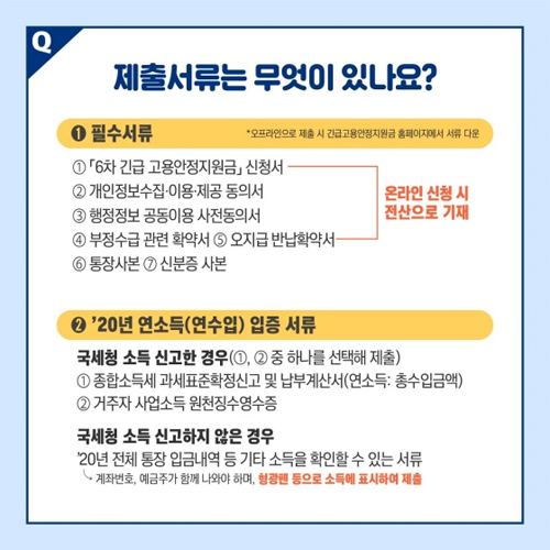 1. 6차 긴급 고용안정 지원금 신규신청 서류 - 필수서류