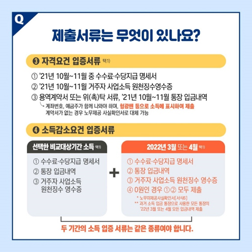 4. 소득감소요건 입증서류(위 세부 항목 및 내용 참조)