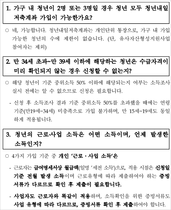 Q. 청년 내일저축계좌 신청방법 자격조건 - 가구 내 청년이 2명 또는 3명일 경우 청년 모두 청년내일저축계좌 가입이 가능한가요?