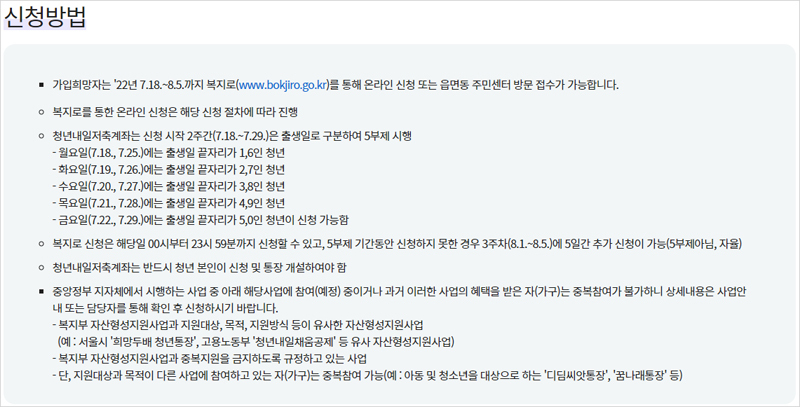 청년 내일저축계좌 신청기간 및 가입대상 신청방법
