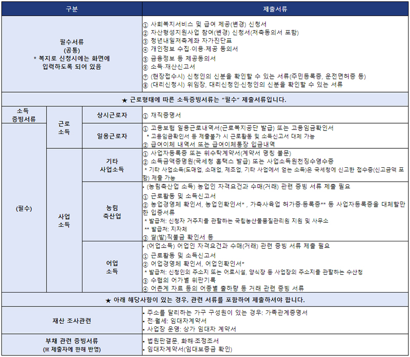 ▣ 2022 청년내일저축계좌 신청서류 중 필수서류(공통)