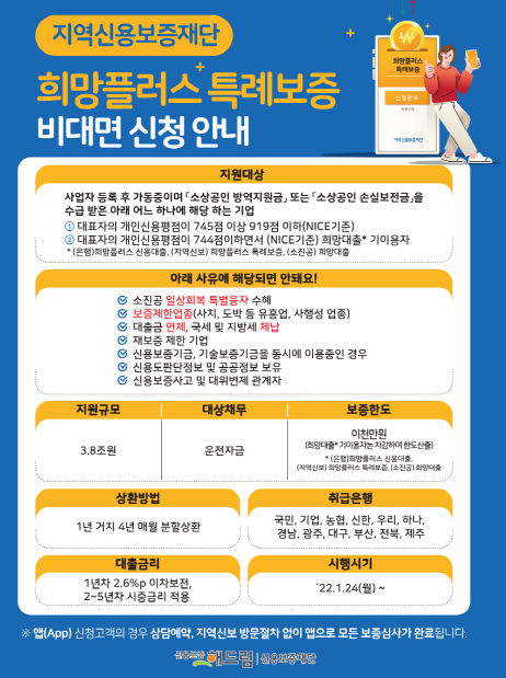 비대면 소상공인 희망지원플러스 특례보증 신청방법은