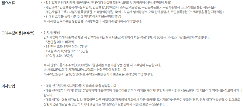 ※ 서울보증보험(임차자금보증) 보험료는 농협은행이 부담합니다.