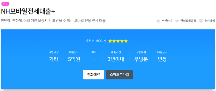 ◈ NH농협 모바일 전세자금대출 상품특징