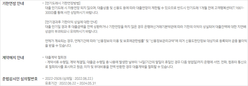 - 본 대출에 대한 별도의 특약사항이 있을 수 있습니다.