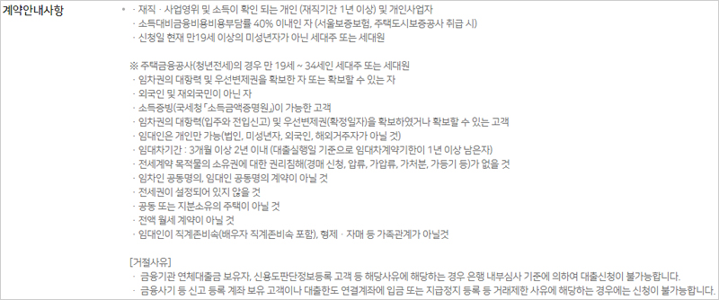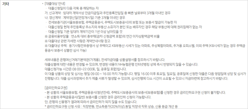 ㆍ임대차기간 : 3개월 이상 2년 이내 (대출실행일 기준으로 임대차계약기한이 1년 이상 남은자)