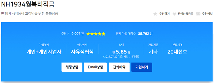농협 NH1934 월복리 적금 이자 및 금리 이율 상품정보, 가입방법